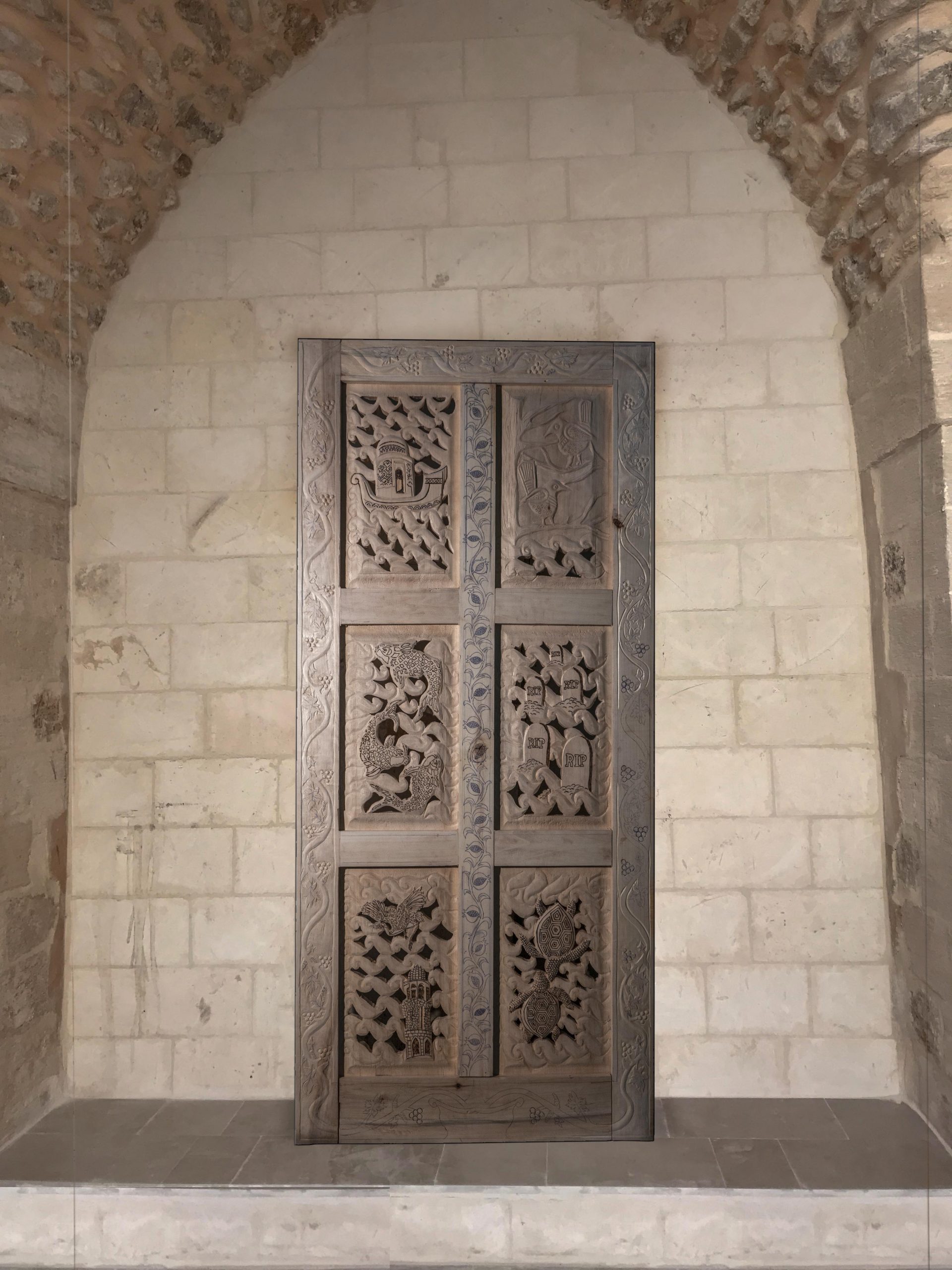 “Tofan” is a joint artwork of the artist and the artisan and means “great destruction” in the artist’s mother tongue. The plants and animals in Tigris River Valley are lost lives of the dam and Hydroelectric plant project construction. In the work of art “Tofan”, these lost lives are represented by drawings engraved on a wooden door, in the concept of Ecological Mourning. Through a fictive expression, a journey to the world of these organisms is dreamed.