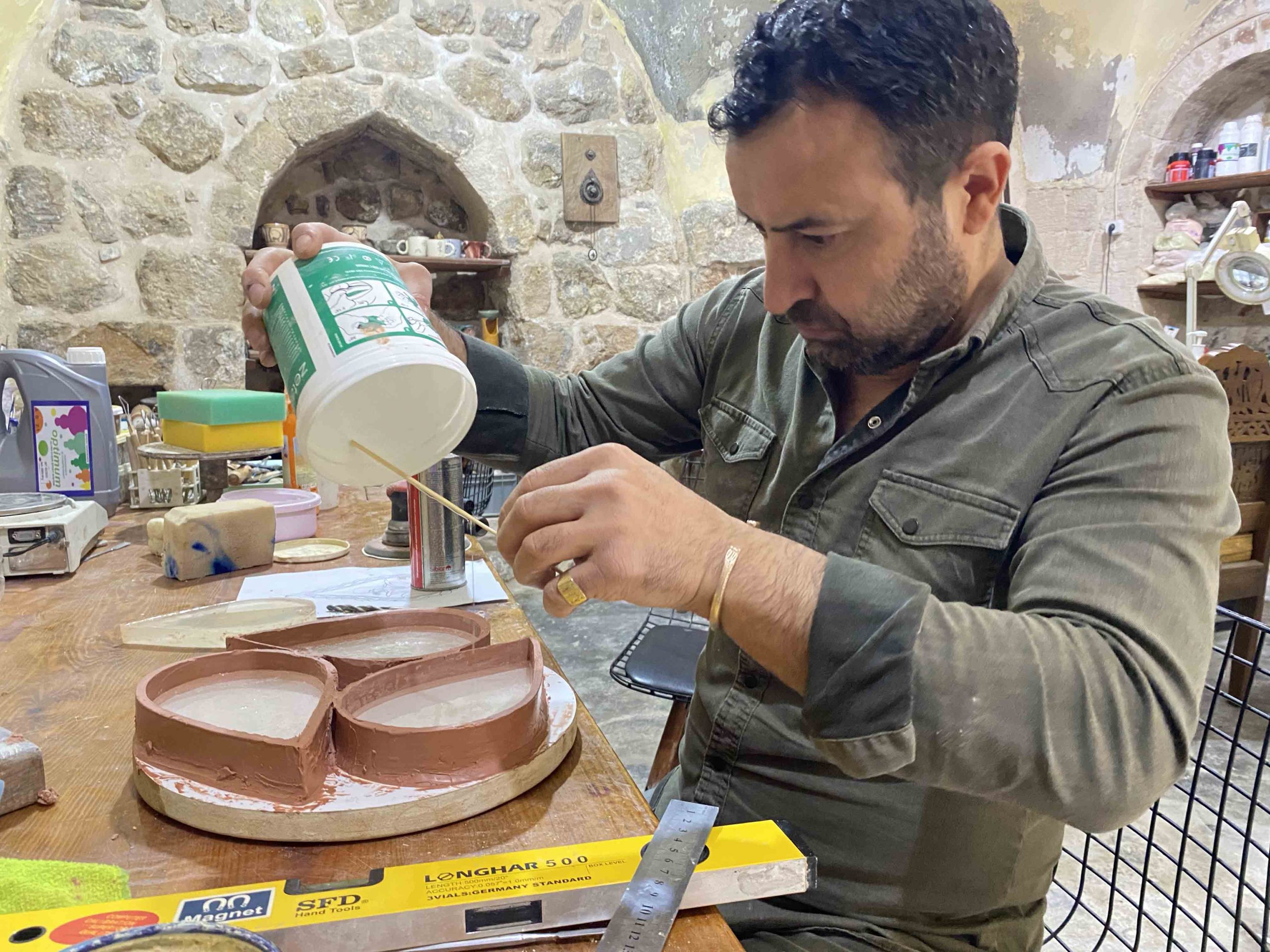 Şeyhmus Bartan has been working with stone since 1995. He learned the art under the apprenticeship of Yusuf Kıdır, who trained under Master Eyüp. Today, he has been maintaining and designing the stonework for the interiors and exteriors of numerous public and private buildings in Mardin.